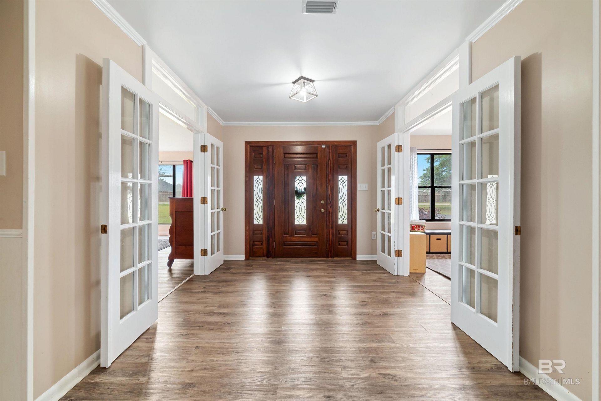 Incredibly RARE OPPORTUNITY to own apx 2 acres with a main house, guest house, & workshop. Located in the middle of everything that makes Foley convenient and just 1 minutes from OWA, shopping, over 25 dining options, Tanger Mall, the Bowling Ally and yet still only 20 minutes to the sandy white beaches of Gulf Shores & Orange Beach. The main home offers 4 bedrooms, 3 bathrooms featuring TWO primary suites both w/ en-suites & dual vanities PLUS an office, (or converted to a 5th bedroom) PLUS a flex space that can be used as a 2nd office, playroom etc, and there's more...a LARGE 300 sq. ft sunroom that gives you even more room to spread out and offers additional flexibility and functionality!! Use it as an enormous family room, kids room or add a pool and make it your new pool house!!! The detached guest house is yet another HUGE bonus with its own living area, kitchenette, bedroom, bathroom, & private patio overlooking a sprawling grassy area and beautiful mature trees?perfect for extended family, multi-generational living or additional income as a long term rental!No HOA means plenty of space for boats, RVs, vehicles, and toys.Major updates already done including roof in 2020, HVAC's (2014 and 2023), both electrical panels and all new breakers are new (Electrical ran w/ 240 amp breaker so a mini-split can be added to the guest house), all 3 water heaters have been replaced. New field lines for the septic & a new well for irrigation in 2020. And the final big selling point is ¦ an assumable mortgage at 2.75%!! If you've been waiting for something with space, flexibility, and close proximity to everything that makes this area special ?this is it. Buyer to verify all information during due diligence.