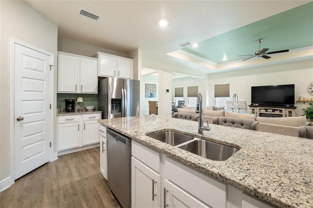 Tucked away in one of Daphne's most amenity-rich communities, this immaculate home features 4 BR, 3 1/2 baths, a 3 Car Garage and a full MIL Suite. The open floor plan and lofty ceilings create an open, airy feel, while the tray ceilings add elegance and architectural detail. The well-appointed kitchen features granite counters, stainless appliances, a gas stove and walk-in pantry. A breakfast area and separate dining room provide ample space for gathering with friends and family. The oversized primary suite features a tray ceiling, double vanity, soak tub, separate shower, private water closet, and walk in closet. The 'mother-in-law suite offers a private BR/LR/kitchenette combo for guests, extended family, or a dedicated home office. The additional 2 bedrooms share a hall bath with granite counters and a tub shower combo. Enjoy the hummingbirds, butterflies and birds from the screened porch that overlooks the beautifully landscaped backyard. Also, enjoy peace of mind with a whole-house generator that ensures year around comfort. The energy efficient features include thermal doors, Energy Star rated double pane windows, and a 14 SEER Carrier Heat Pump HVAC. In addition to the energy saving features, desirable floor plan, and 3 Car Garage, the neighborhood amenities set this home apart! Amenities include separate resort-style pools for kids and adults, a splash pad, clubhouse with workout room, grill area, and scenic lakes with walking trails. Jubilee Farms is located minutes from schools, shopping and restaurants and a short drive to the sandy white beaches on the Gulf of Mexico. Buyer to verify all information during due diligence.