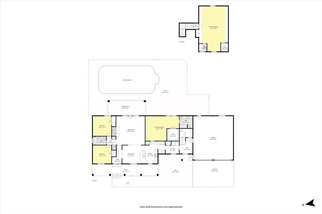 2.3 ACRES | SALTWATER POOL | NEW HVAC | METAL ROOF | OVERSIZED GARAGE + RV/CARPORT! Situated on 2.3 acres across three parcels, this spacious 4-bedroom, 2.5-bath home offers over 2,500 square feet of living space with the features buyers are searching for-in-ground saltwater pool, new windows, metal roof, and exceptional parking and storage options. Enjoy an oversized two-car garage, a large carport ideal for RV or boat storage, plus an additional single carport for even more covered parking. Major updates already done: HVAC system approximately 1.5 years old with ~8 years of remaining warranty, Leaf Guard gutter system, new front door hardware, and updated kitchen faucet. The pool has been extensively updated with a new salt system (less than 1 year old), sand filter, salt cell, and Polaris pool robot (under 6 months old). A new refrigerator may also convey. Inside, you're welcomed by a large front porch and foyer that opens into a sunken living room featuring high ceilings and a brick wood-burning fireplace. Step directly out back to your private, fenced pool area with a covered porch-set up perfectly for entertaining or unwinding at the end of the day. The kitchen offers granite countertops, pantry, abundant cabinetry, large breakfast bar, and an eat-in dining area with views of the front yard and open sightlines into the living space. The primary suite includes a flex space for office or sitting area, spacious walk-in closet, and a bathroom with double vanity and oversized jetted tub/shower combo. A split-bedroom layout on the main level provides two additional bedrooms with a shared bath. Upstairs, the 20x30 fourth bedroom/bonus room includes its own half bath and PTAC unit-perfect for a media room, guest suite, or home gym. The main-level laundry connects to a mudroom and oversized attached garage for everyday convenience. If you've been looking for land, a pool, and so much more-this property checks all the boxes. Call today to schedule your showing and make this your 'New Beginning! All updates per seller. Listing company makes no representation as to accuracy of square footage; buyer to verify.